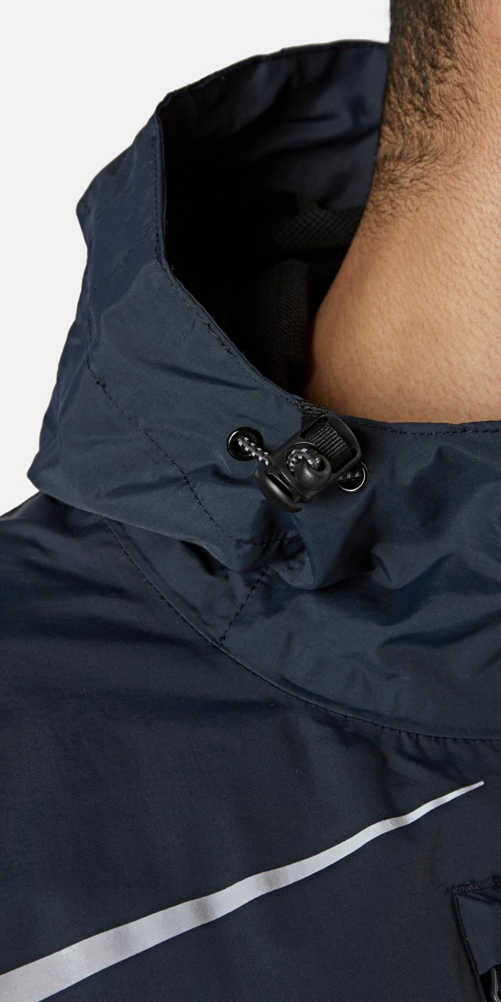 100% nylon. Veste avec un revêtement en PU. Tissu imperméable jusqu'à 10 000 mm et respirant jusqu'à 5000 g/m2/24h. Full Zip. Ourlet plongeant. Ourlet avec bande transparente réfléchissante. Capuche. Poche poitrine. Poignets élastiqués.