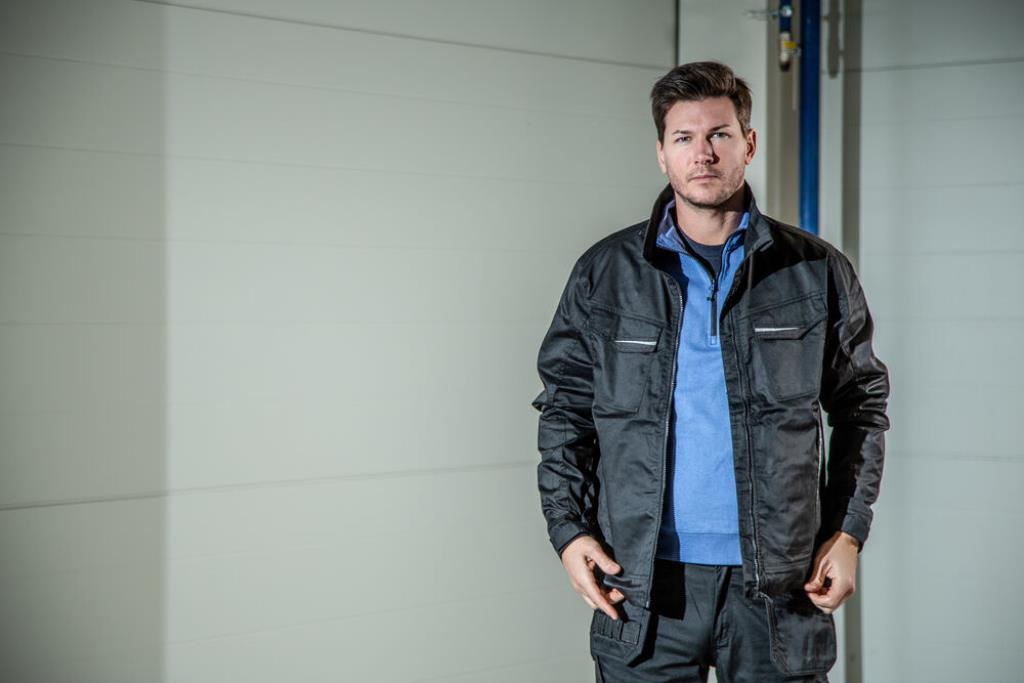 Sweatshirt col zip - bandes latérales contrastées - Intérieur non gratté - bords côtes 1X1 col / poignets + taille - Lavage 60°.