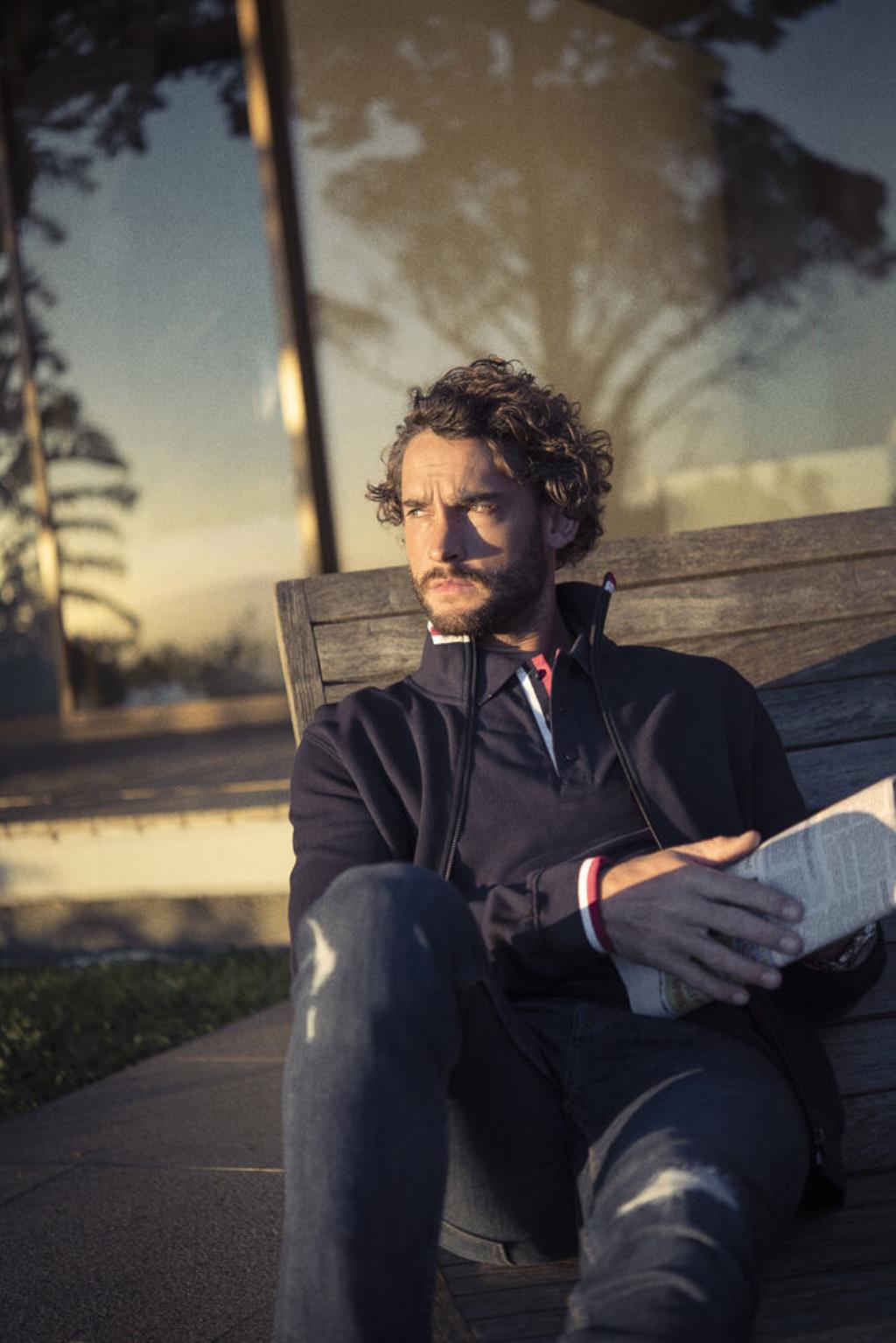 Polo homme avec un col en tissu tissé teint. Contrastes sur le revers du col, patte de boutonnage et manches bords-côtes. Bande de propreté et demi-lune au col.
