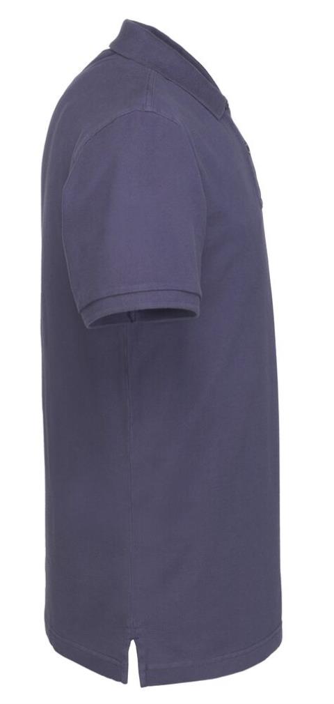 Polo maille piquée, délavé pour un effet vintage. Bord côtes au col et aux manches. Col 2 boutons et fentes latérales. Surpiqûre contrastée de la boutonnière au premier bouton. Fil teint antidégorgement.