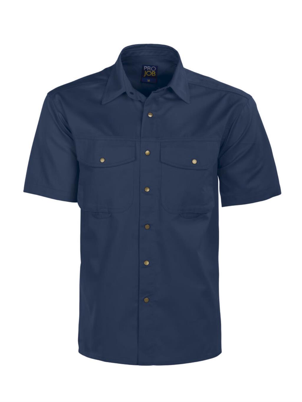 Chemisette manches courtes polycoton - Boutons à pression - 190 g/m2 - 2 grandes poches poitrine a/ espace pour le système Inbag - Empiècements aux épaules - Très bien coupée - Lavage 60°