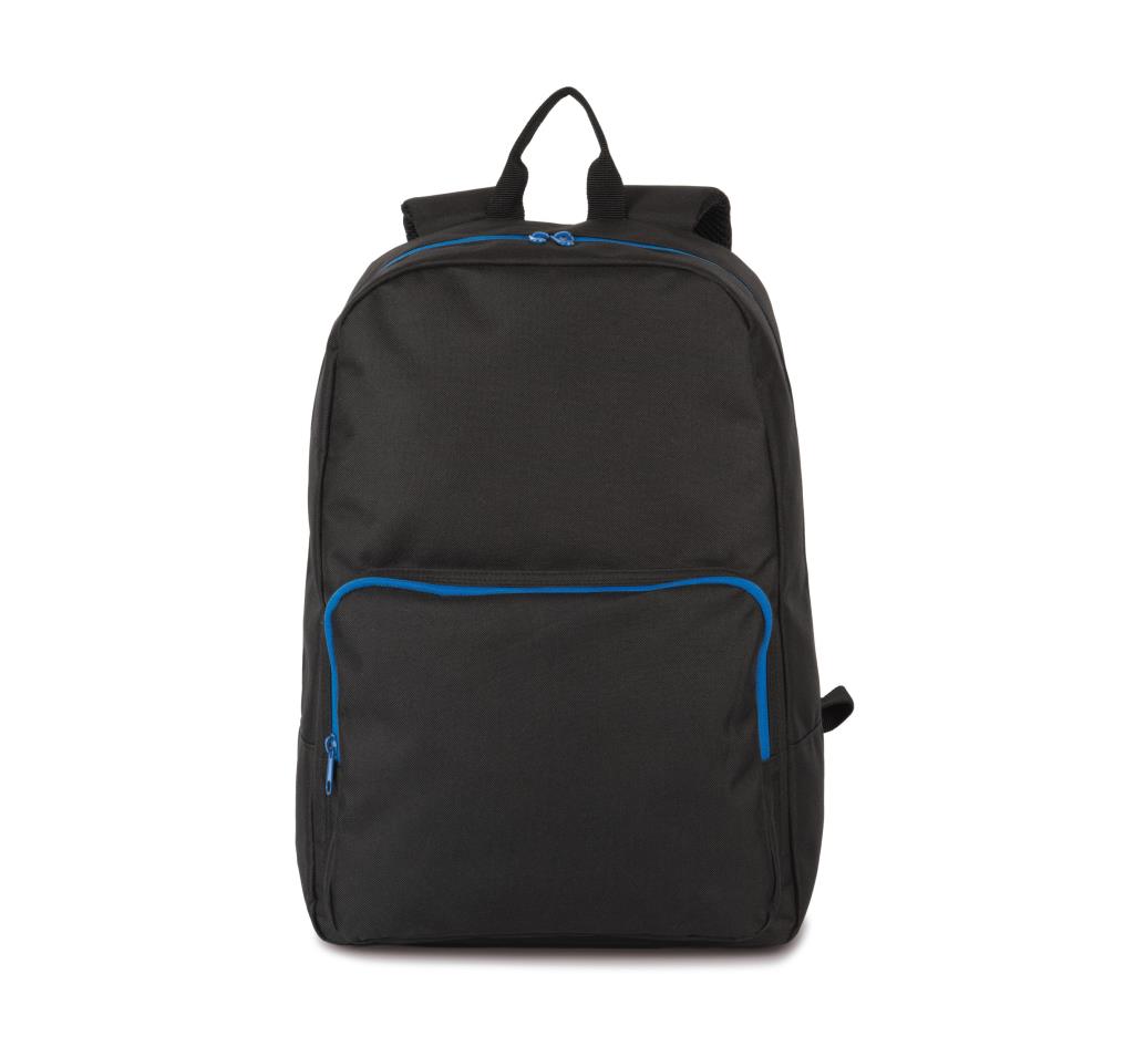 100% polyester. Sac à dos classique en polyester avec fermetures contrastées. Compartiment principal matelassé porte-ordinateur et tablette jusqu’à 15 pouces. Grande poche et panneau sur le devant idéal pour tous types de personnalisation. Dos et bretelles respirants et matelassés pour un confort maximum.
